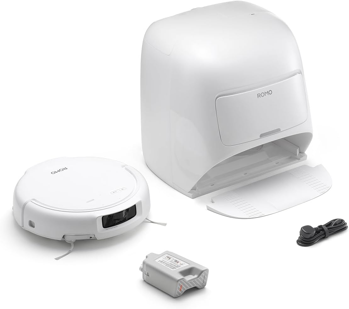 - Solutions de passage de la serpillière personnalisables – L’aspirateur robot ROMO dispose de compartiments pour la solution de nettoyage et le désodorisant pour sol, et peut distribuer l’un ou l’autre directement sur les tampons de serpillière.